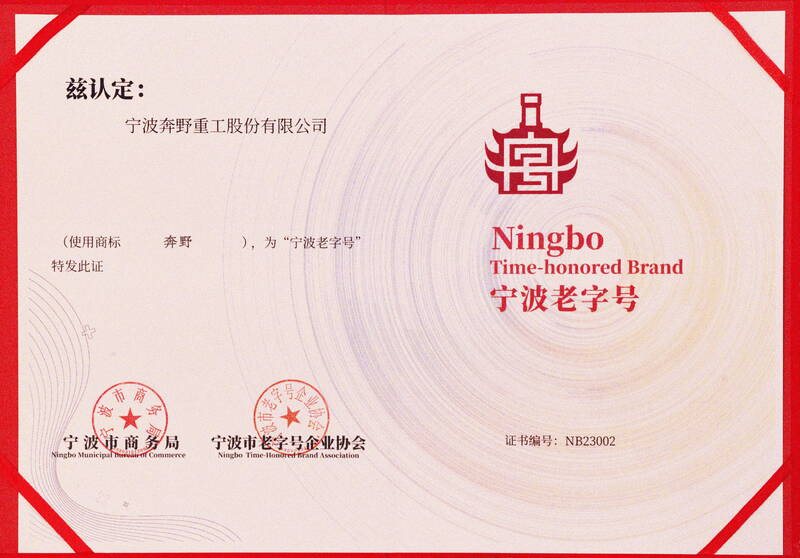 2023年11月12日,第三批“寧波老字號(hào)”授牌儀式在寧波國(guó)際會(huì)展中心2023中國(guó)(寧波)食品博覽會(huì)現(xiàn)場(chǎng)隆重舉行。本次活動(dòng)由寧波市老字號(hào)企業(yè)協(xié)會(huì)會(huì)長(zhǎng)張空主持,寧波市商務(wù)局副局長(zhǎng)葉文濤等領(lǐng)導(dǎo)出席并講話。寧波市商務(wù)局消費(fèi)促進(jìn)處處長(zhǎng)尹秋平為寧波奔野重工股份有限公司授牌,“奔野”品牌榮獲寧波老字號(hào)稱號(hào)。