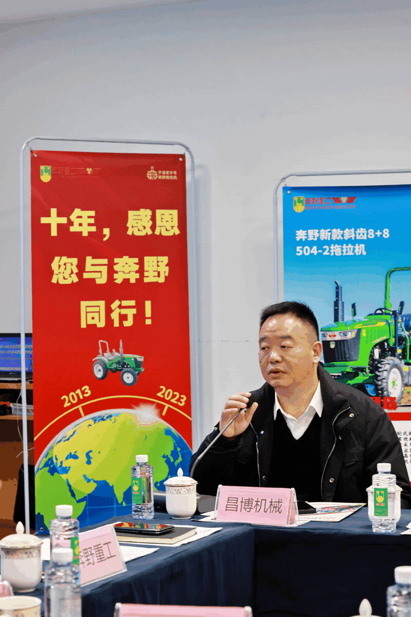 王興洪感慨地說(shuō):2013年我們從一個(gè)猶如70~80年代舊廠房,簡(jiǎn)易場(chǎng)地上起家發(fā)展,資金、人才、技術(shù)、資源都短缺,政治資本幾乎為零,通過(guò)學(xué)習(xí)不間斷地自強(qiáng)和發(fā)展走到今天具備現(xiàn)代化生產(chǎn)經(jīng)營(yíng)的規(guī)模確實(shí)非常的不容易。時(shí)代不會(huì)幫你發(fā)展,只有你自己把握正確的方向、服務(wù)、規(guī)劃、理念,只有這樣社會(huì)才能認(rèn)可你,行業(yè)認(rèn)可你。10年的風(fēng)風(fēng)雨雨、大風(fēng)大浪,各種困難我們都經(jīng)歷過(guò)。期間有多少供應(yīng)商在背后默默地支持我們的發(fā)展,又有多少人在背后說(shuō)三道四,我們都一一做到一清二楚。從拖拉機(jī)的價(jià)值成本上來(lái)講,最大的就是動(dòng)力,發(fā)動(dòng)機(jī)這一塊。那時(shí)候新柴股份,昌博機(jī)械等就這樣的全力支持我們,現(xiàn)在想想那時(shí)候的支持真的是需要膽量和遠(yuǎn)見(jiàn),貨一來(lái)就是幾百萬(wàn)甚至上千萬(wàn)。這10年我們什么都經(jīng)歷過(guò),比如我200%的放心讓員工去干,結(jié)果呢,培養(yǎng)了一批競(jìng)爭(zhēng)對(duì)手。每次的困難打擊我們都一一排除,體現(xiàn)了我們奔野人的自我降壓、解圍能力和強(qiáng)大內(nèi)心。10年來(lái)到今天我們一直在打造基礎(chǔ),同時(shí)也得到了行內(nèi)的基本認(rèn)可,也做到了浙江省不說(shuō)第一也是標(biāo)桿性贊譽(yù)。從品牌向往到真正落地,從迪爾手里爭(zhēng)取回奔野品牌,又做到了寧波老字號(hào),正在爭(zhēng)創(chuàng)省級(jí)老字號(hào),中華老字號(hào)。說(shuō)實(shí)話要獲得制造業(yè)的老字號(hào)真的不容易,可能我們是行業(yè)中的首創(chuàng)。奉化人說(shuō)我是“傳奇”?;叵?0年來(lái)到現(xiàn)在,我自己也覺(jué)得我是個(gè)傳奇,但是這個(gè)傳奇離不開(kāi)在座各位的大力支持,特別是從0-1,開(kāi)始到現(xiàn)在這一階段的支持,那個(gè)時(shí)候的支持,像黃金的含金量99.99%。在此我再次代表全體員工及家人,衷心地感謝大家!2023年我們研發(fā)了多款產(chǎn)品上市,未來(lái)的主力產(chǎn)品也已經(jīng)下地試驗(yàn),改進(jìn)完善后既可以量產(chǎn),經(jīng)銷(xiāo)商紛紛打款訂貨。知識(shí)產(chǎn)權(quán)保護(hù)與打擊方面也取得了顯著成績(jī),扎實(shí)的業(yè)績(jī)基礎(chǔ)奠定了奔野未來(lái)的發(fā)展,希望各位企業(yè)老板能對(duì)我們更加有信心,與我們一路同行。