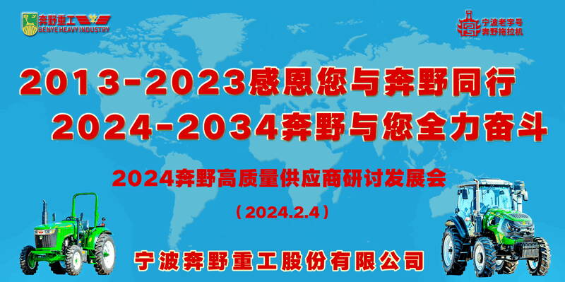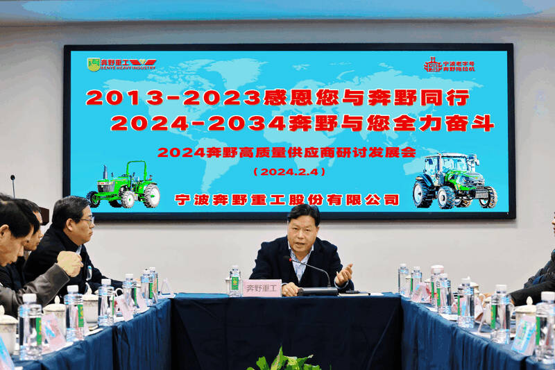 2024年2月4日,“2024 高質(zhì)量供應(yīng)商研討發(fā)展會(huì)”在寧波奔野重工股份有限公司隆重召開(kāi),會(huì)議的主題是“2013-2023感謝您與奔野同行 2024-2034奔野與您全力奮斗”,來(lái)自全國(guó)各地 20家供應(yīng)商及奔野重工技術(shù)、銷(xiāo)售、采購(gòu)、品質(zhì)、管理、生產(chǎn)、財(cái)務(wù)等部門(mén)中層人員共60多人歡聚一堂共商合作發(fā)展大計(jì)。
