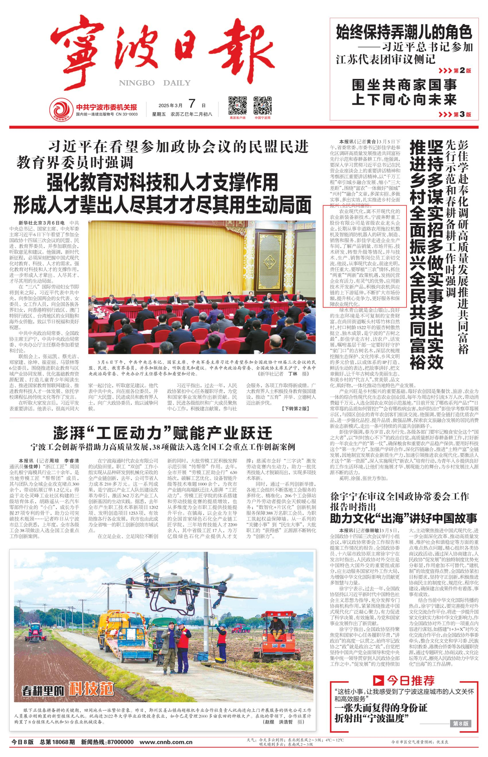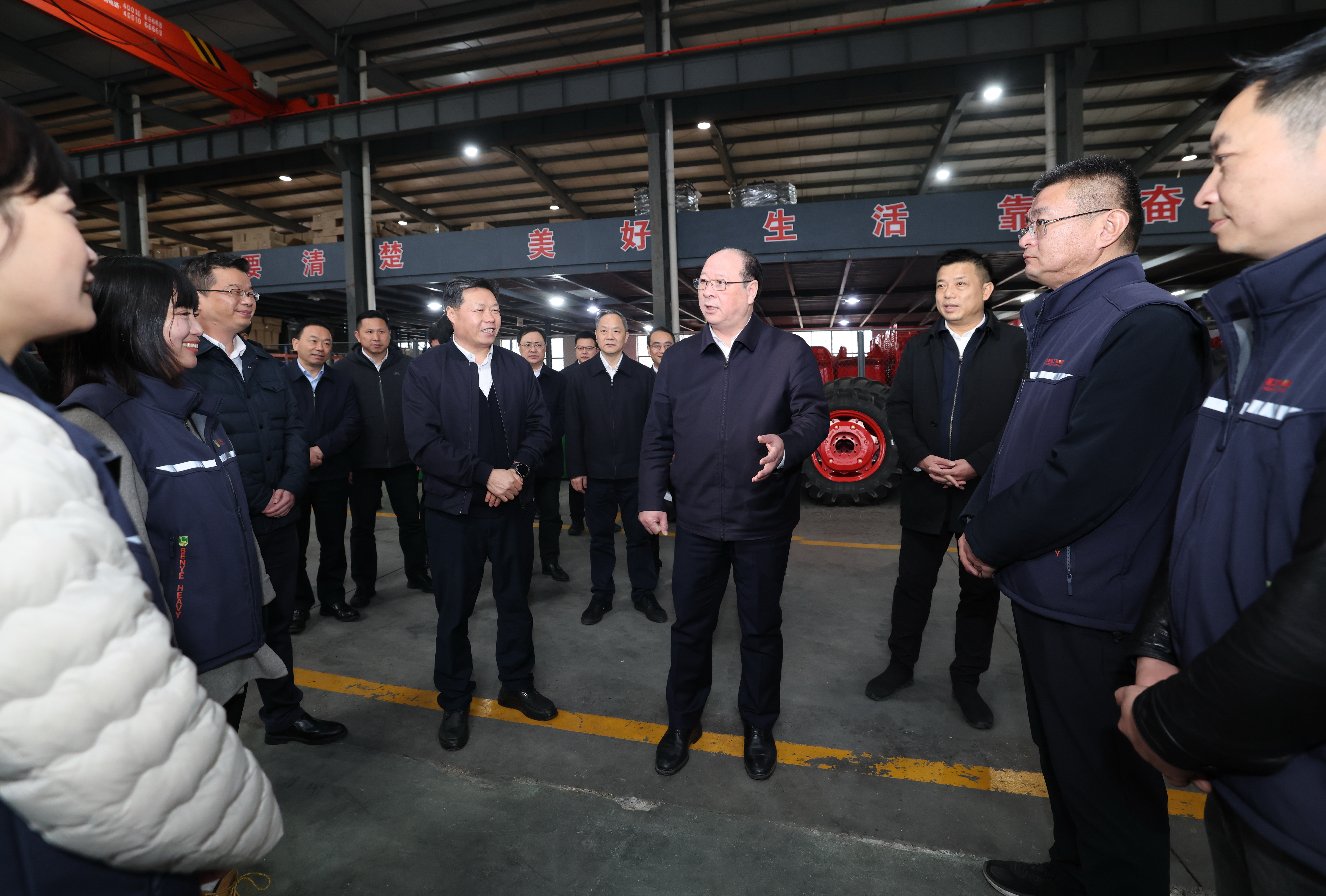 “農(nóng)業(yè)現(xiàn)代化,離不開現(xiàn)代化的農(nóng)業(yè)新裝備新技術(shù)。寧波奔野重工股份有限公司是省級農(nóng)業(yè)龍頭企業(yè),長期從事非道路農(nóng)用拖拉機整機及智能消防機器人的研發(fā)、制造、銷售和服務。彭佳學走進企業(yè)生產(chǎn)車間,了解產(chǎn)品銷量、市場開拓、技術(shù)研發(fā)、轉(zhuǎn)型升級等情況,并與技術(shù)、生產(chǎn)、銷售等崗位員工親切交流。他說,從事現(xiàn)代農(nóng)業(yè),前途光明,責任重大。要厚植“三農(nóng)”情懷,抓住“兩重”“兩新”政策機遇,發(fā)揚民營企業(yè)有活力、有靈氣的優(yōu)勢,應用新技術(shù)開發(fā)新產(chǎn)品,積極向農(nóng)機供應鏈的上下游延伸,不斷擴大市場份額,提升核心競爭力,更好服務和保障農(nóng)業(yè)現(xiàn)代化。”