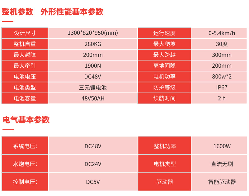 RXR-M40D-BY42 型消防機器人主要由遠程遙控器、機器人履帶底盤、車載大流量多功能水炮、車載環(huán)境感知及回傳系統(tǒng)等組成。